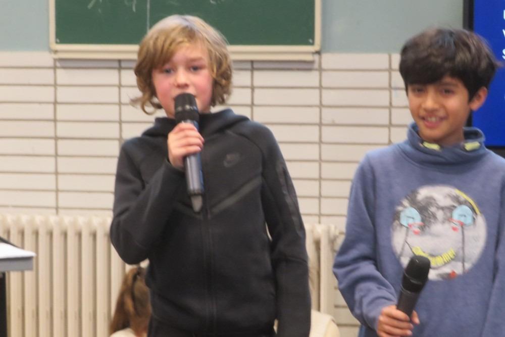 N.a.v. de poëzieweek 2026 vond in onze school de 24ste namiddag van de poëzie plaats. Alle leerlingen van de school kwamen in de turnzaal samen om te luisteren naar de voordrachtkunsten van alle klassen. Enkele leerlingen speelden tussendoor ook op een muziekinstrument. Juffen Margo, Lore en Joke presenteerden de namiddag op een ludieke wijze. Het werd een fijn groepsmoment.